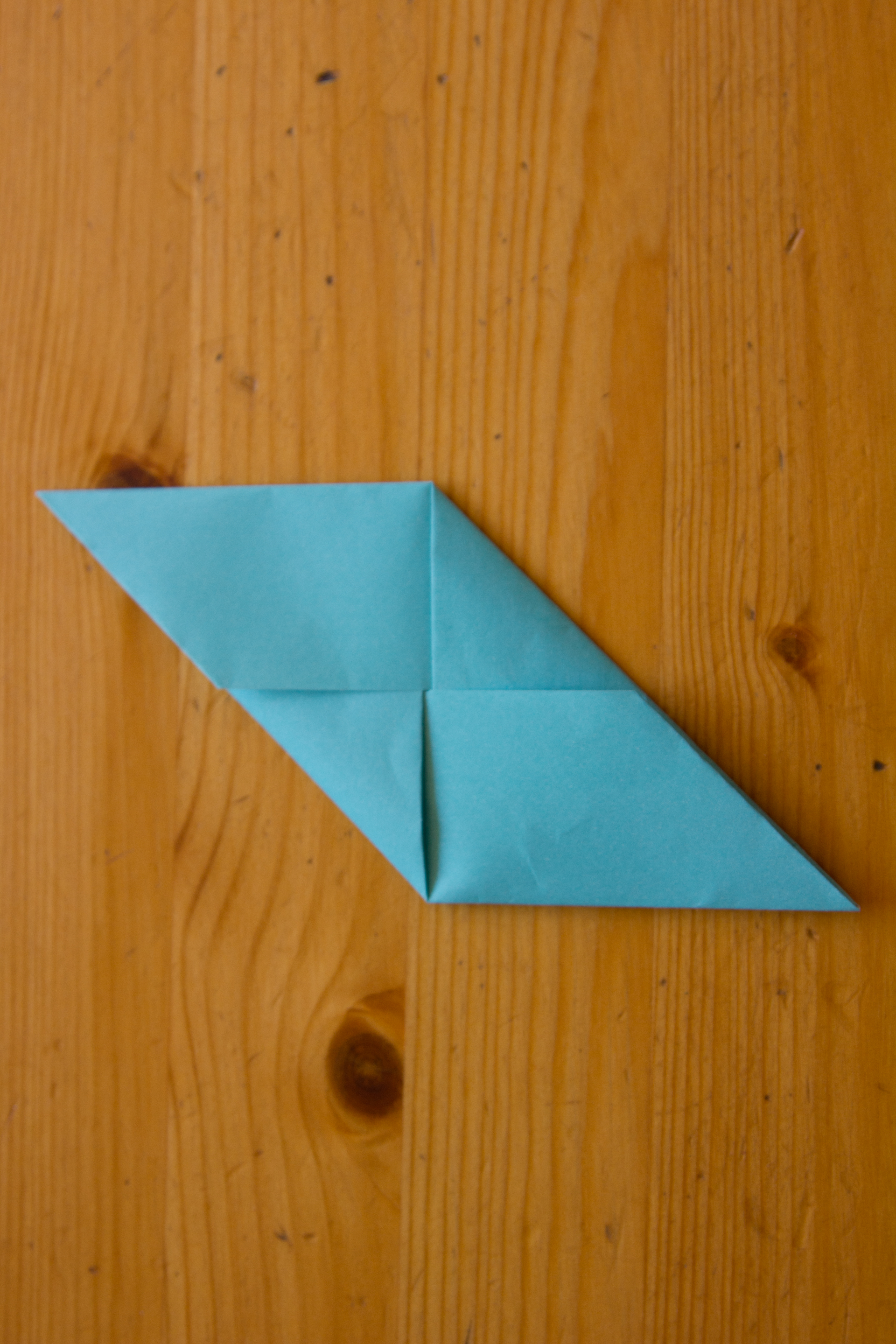 Once you have made six folded paper shapes you can connect them together. All the flaps must sit in the same direction, like in these photos.