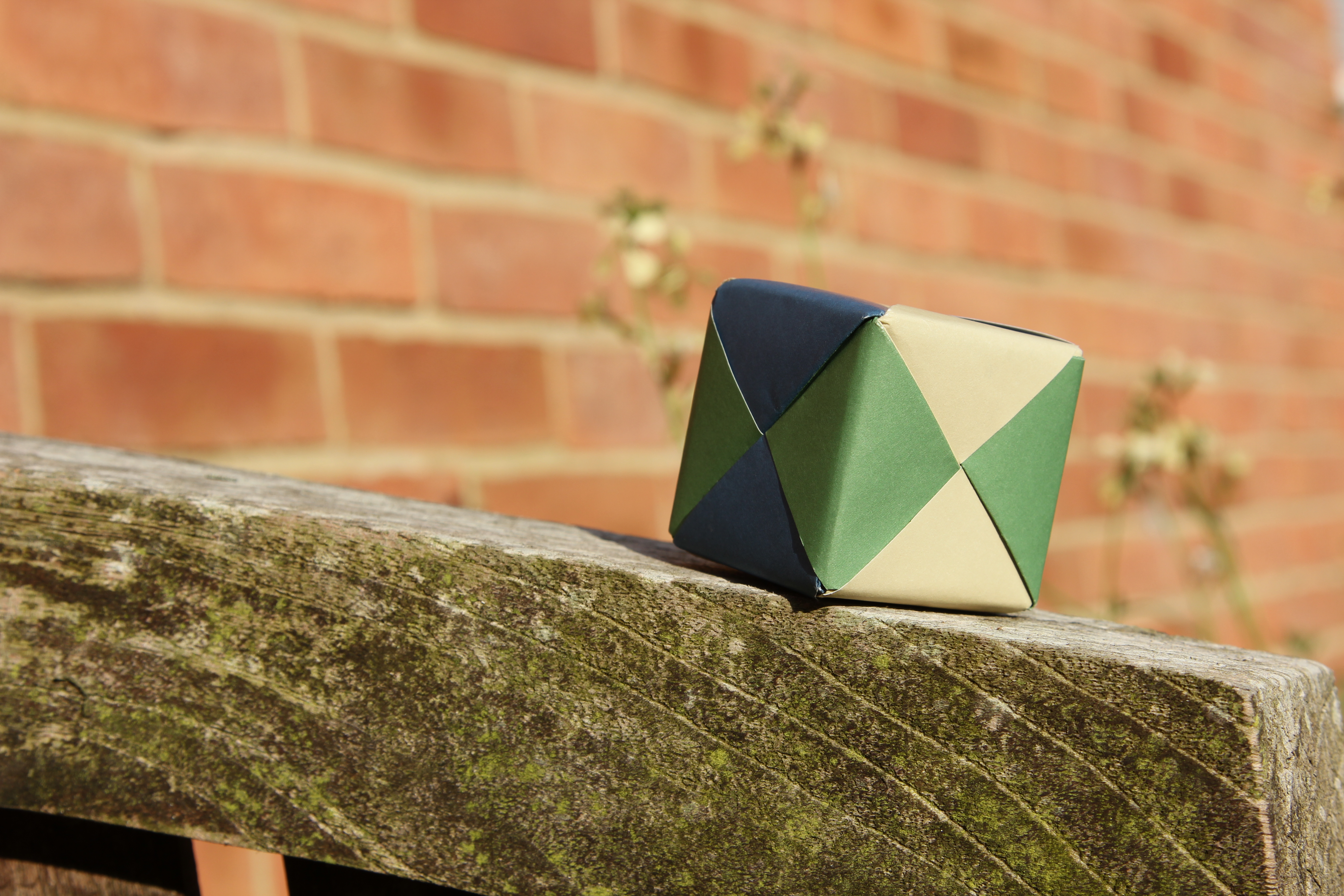 To construct an origami cube you will need to create six identical folded shapes. These shapes are then slotted together to make a cube.